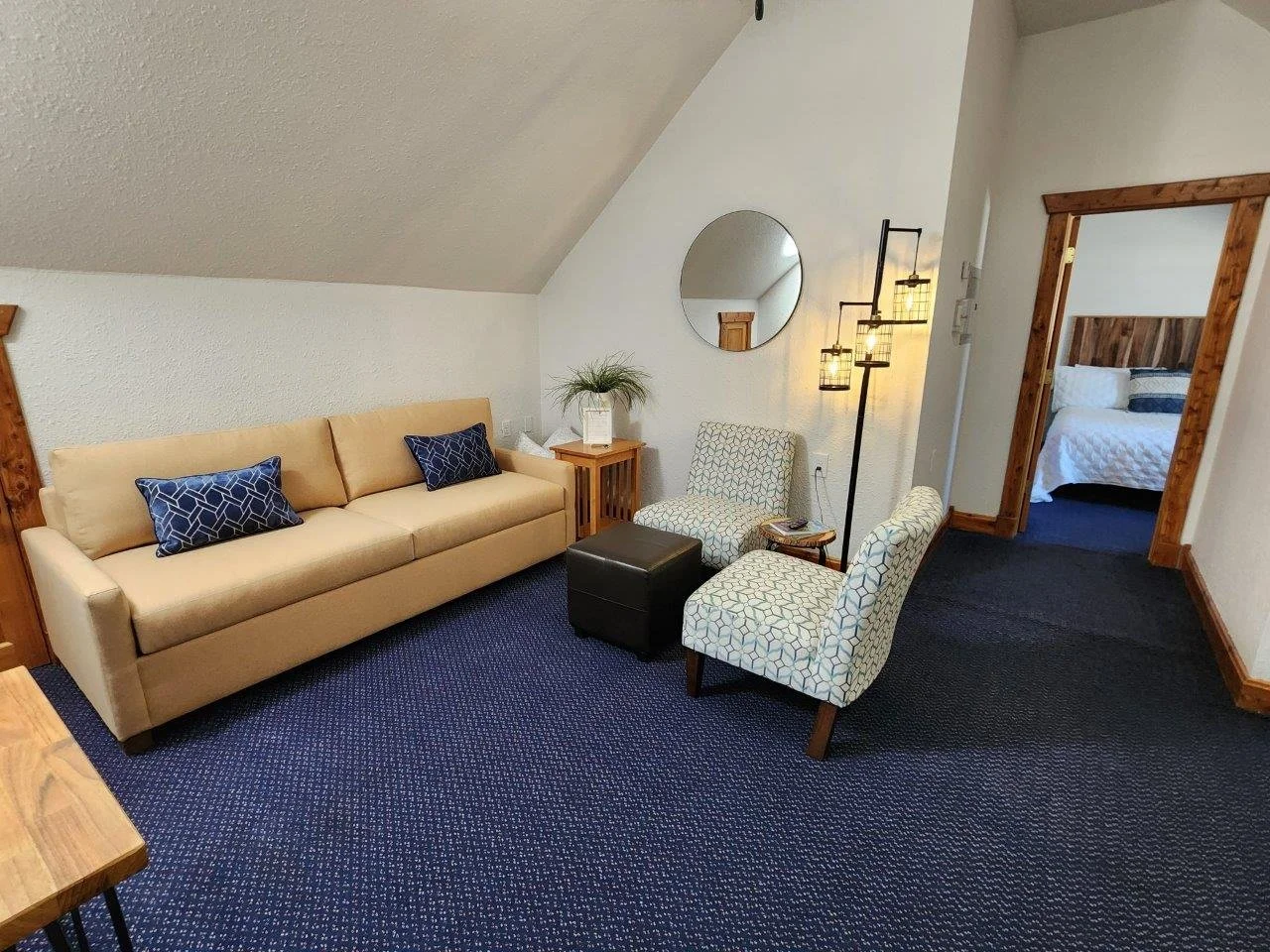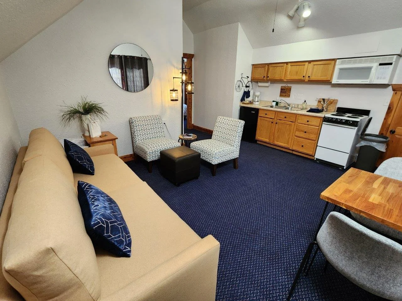 This suite is in the heart of Lanesboro and gives you the feel for living in town. Stay above it all and keep watch over town in this modern loft. With indoor stairs easily accessible from the sidewalk, this room is open year round and can be rented with weekly or monthly rates in the off-season.